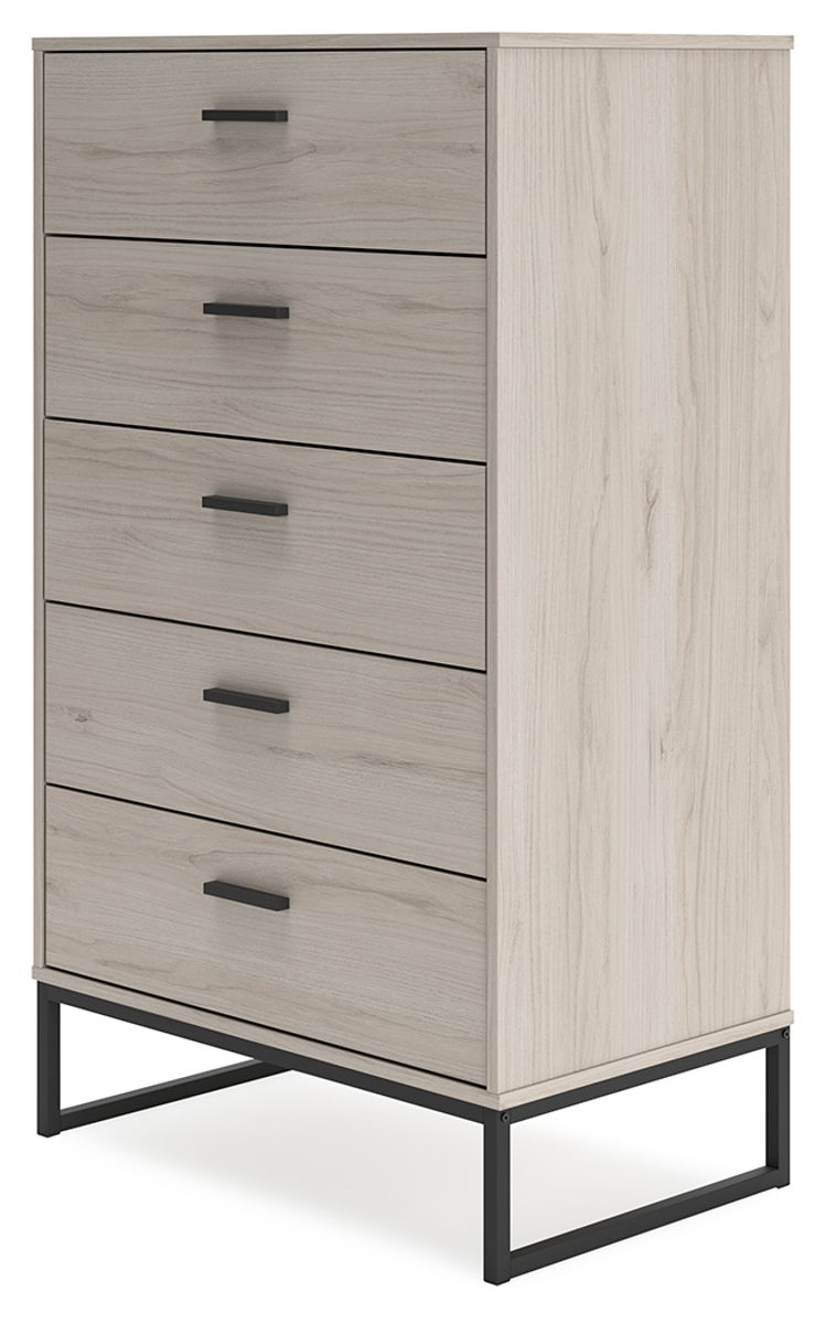 Light and bright, this three-drawer chest is inspired by chic design. A natural finish over replicated oak grain offers an authentic touch to this so-cool piece. Beautifully blend the hues of natural living with the edginess of your modern lifestyle.