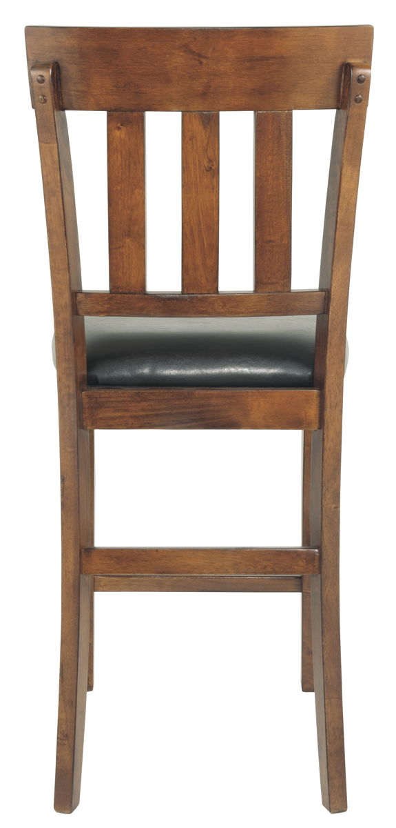 Sleek lines and comfortable cushioning combine to make this upholstered bar stool the favorite seat at the table. Traditional shaker design is given a vintage treatment with the rustic, burnished finish. Faux leather upholstery easily wipes clean.