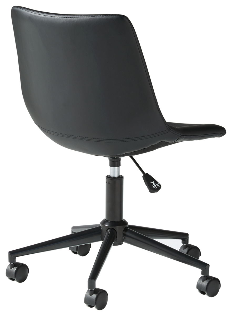 Working an ultra-cool sense of style just got a whole lot easier thanks to this swivel home office desk chair. Upholstered bucket seat covered in a black faux leather merges mid-century flair with modern comfort.