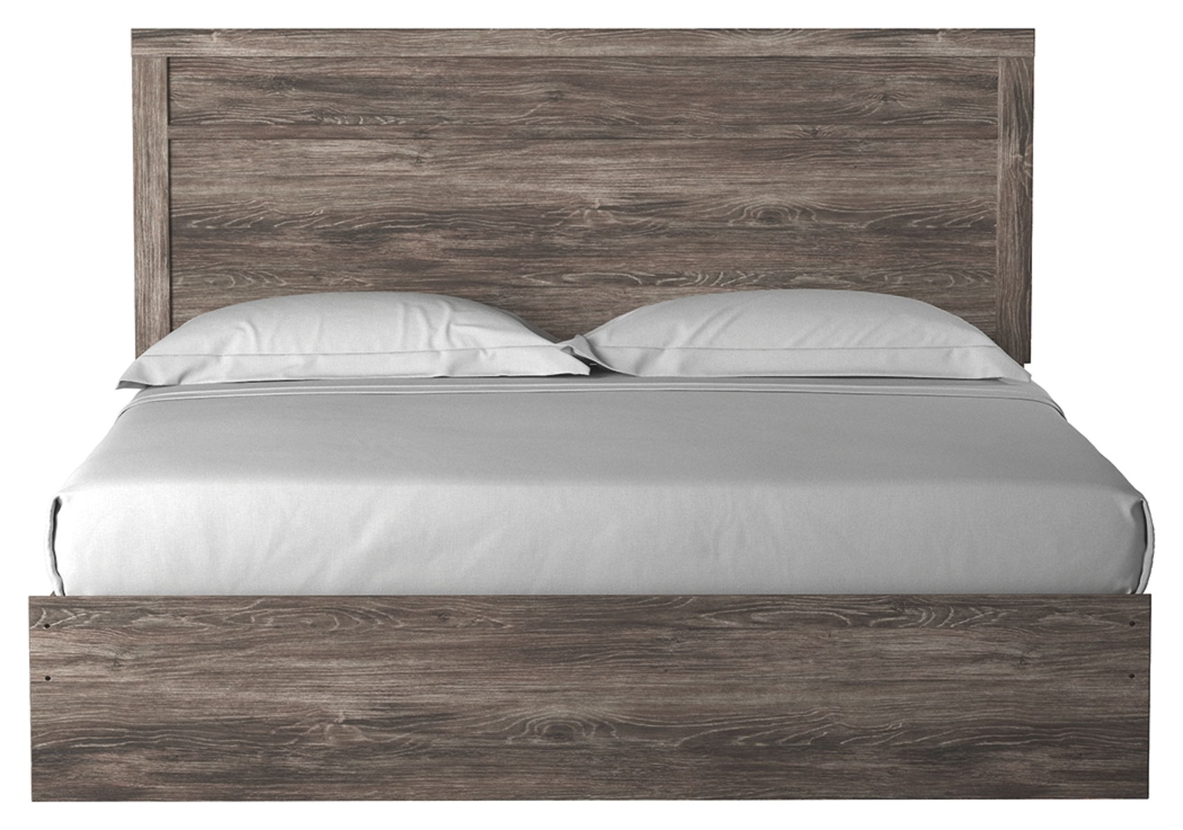 Rustic warm gray finish over replicated Oak grain with authentic touch. Large dark pewter color handles with an aged appearance accent cases. Drawer interiors lined with a replicated linen design for a clean, finished look. Side roller glides for smooth operating drawers. Mouldings across headboard give a thick planked look. Queen (71) and king (72) headboards can attach to a bolt-on metal bed frame B100-31 or B100-66 respectively. Safety is a top priority, clothing storage units are designed to meet the most current standard for stability, ASTM F 2057 (ASTM International). Drawers extend out to accommodate maximum access to drawer interior while maintaining safety.