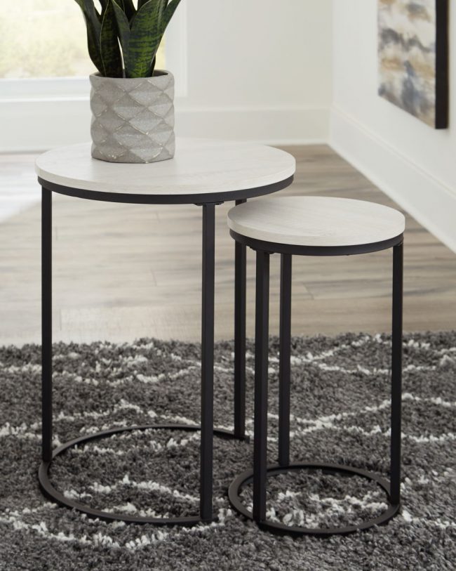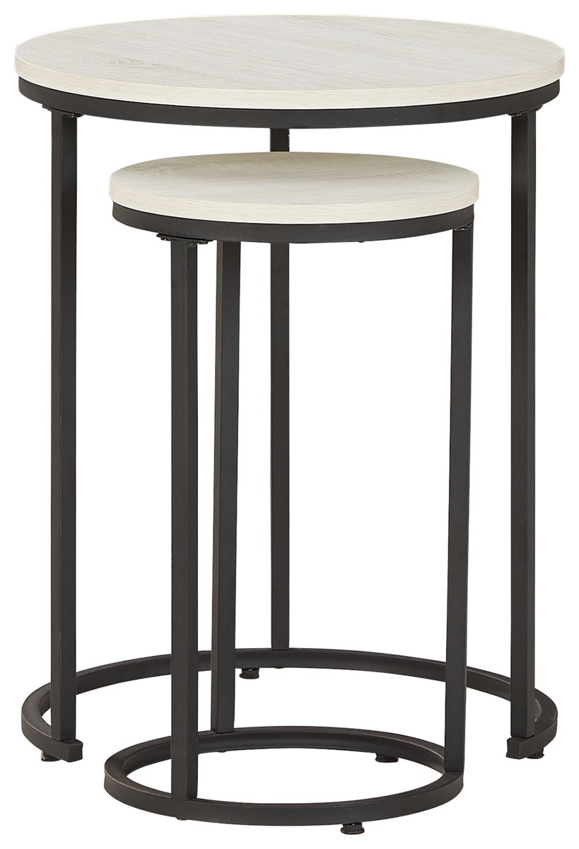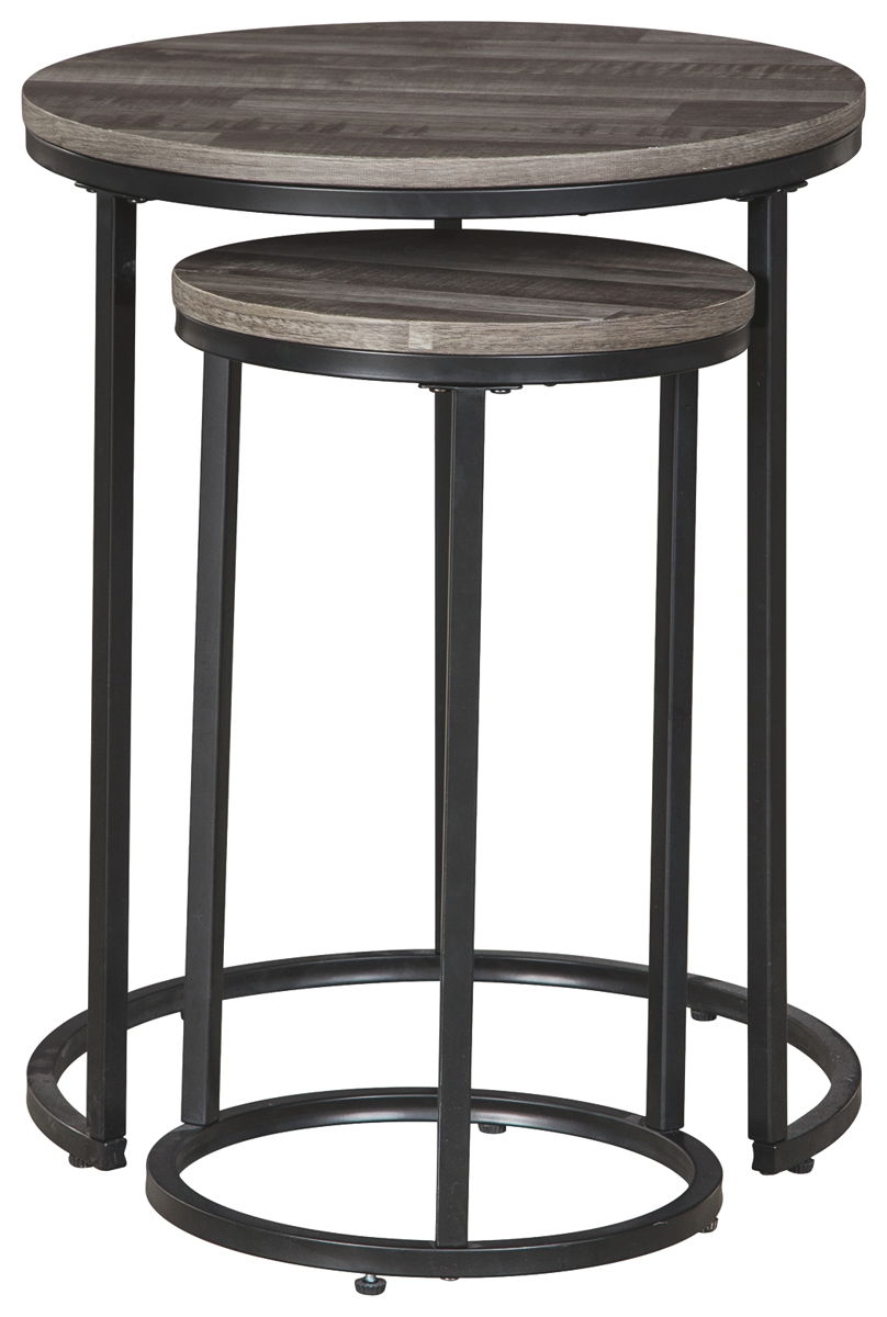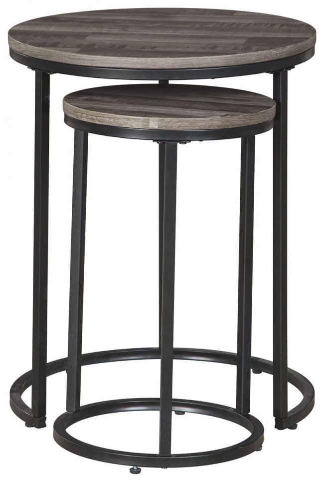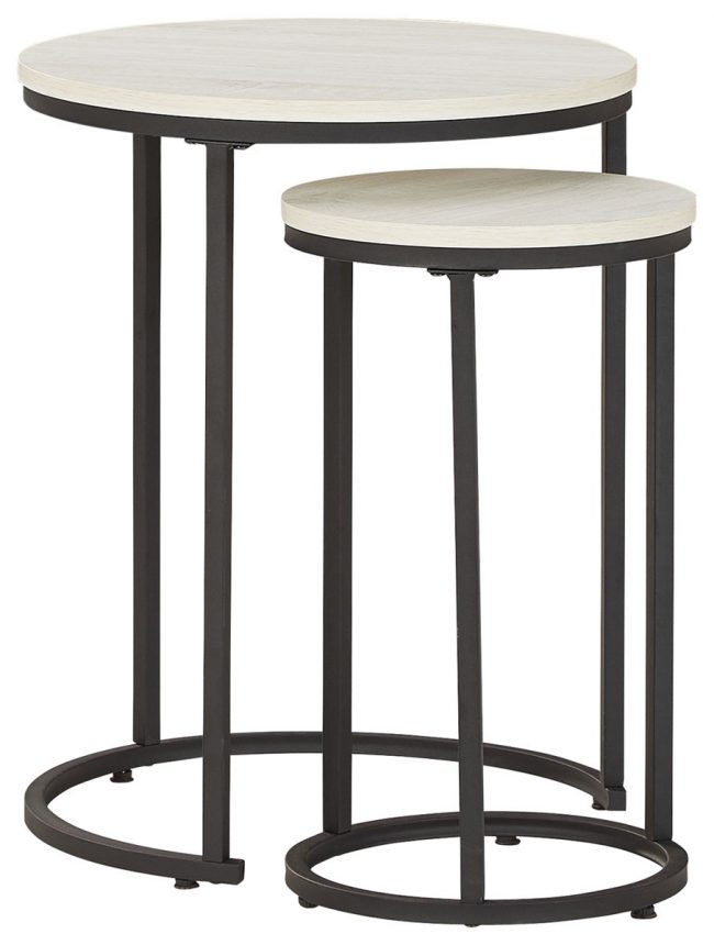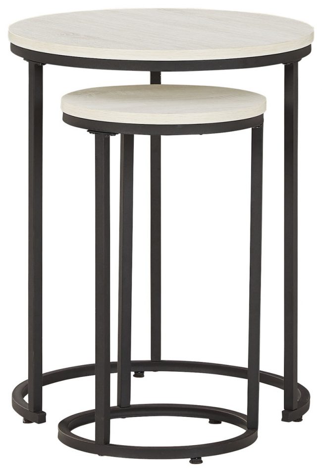 Tight budget? Tight space? You’re all set with this nesting table set. Clean-lined round design is decidedly contemporary, while gray washed tops serve up casual coolness.