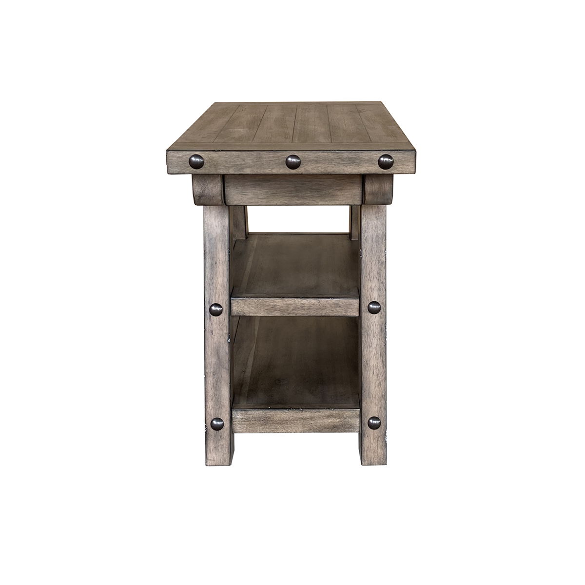 Cozy and naturally simplistic this chairside table accents any room with a rustic cabin feel. The rich multi-tone finish is inspired by mountain ranges and the great outdoors. Perfect for a drink, your favorite book or adding some ambient lighting this 16 inch wide chairside table fits the rustic aesthetic with functionality.