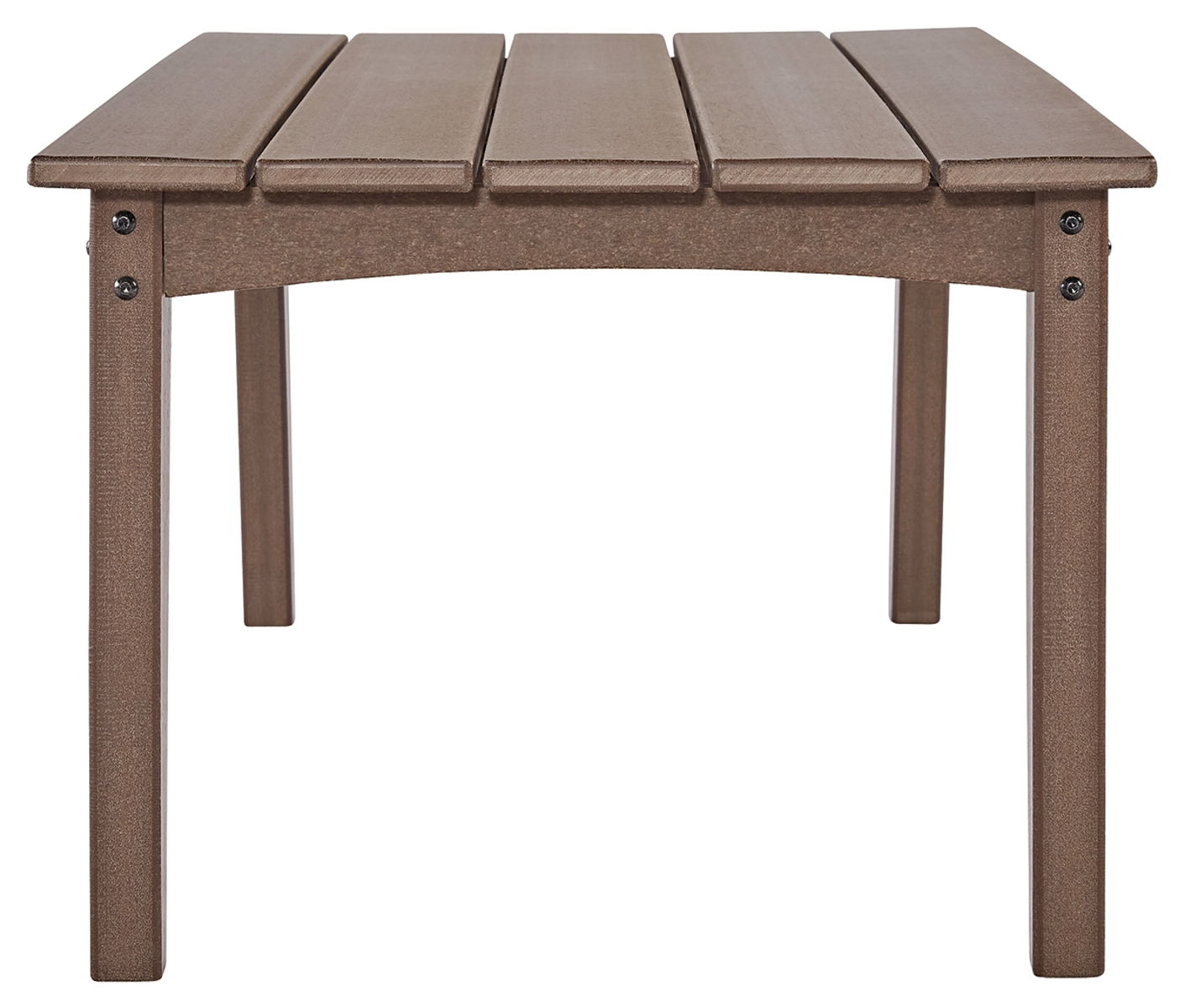 Get back to nature with the relaxed styling of the Emmeline outdoor coffee table. Crafted of MEGA-TUFF® HDPE material, it combines the exceptional durability and weather resistance you need with the “wood look” you love. Rest assured, the slatted tabletop sheds rainwater and helps maintain its appearance season after season.