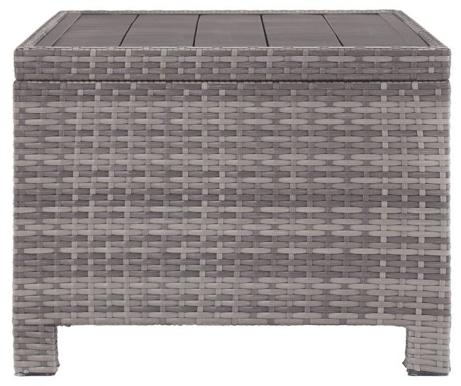 Bring a coastal cool vibe to your outdoor living space with this coffee table. What looks like rattan is actually handwoven resin wicker in gray with all-weather protection. Rest assured, the planked wood-look top is water and stain resistant. Concealed aluminum frame is powder coated for seasons of carefree use.